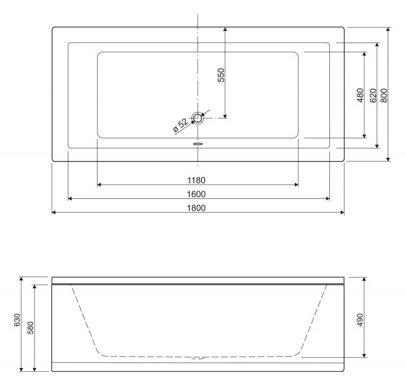 Акриловая ванна Cezares Plane 180х80 с гидро- и/или аэромассажем бронза