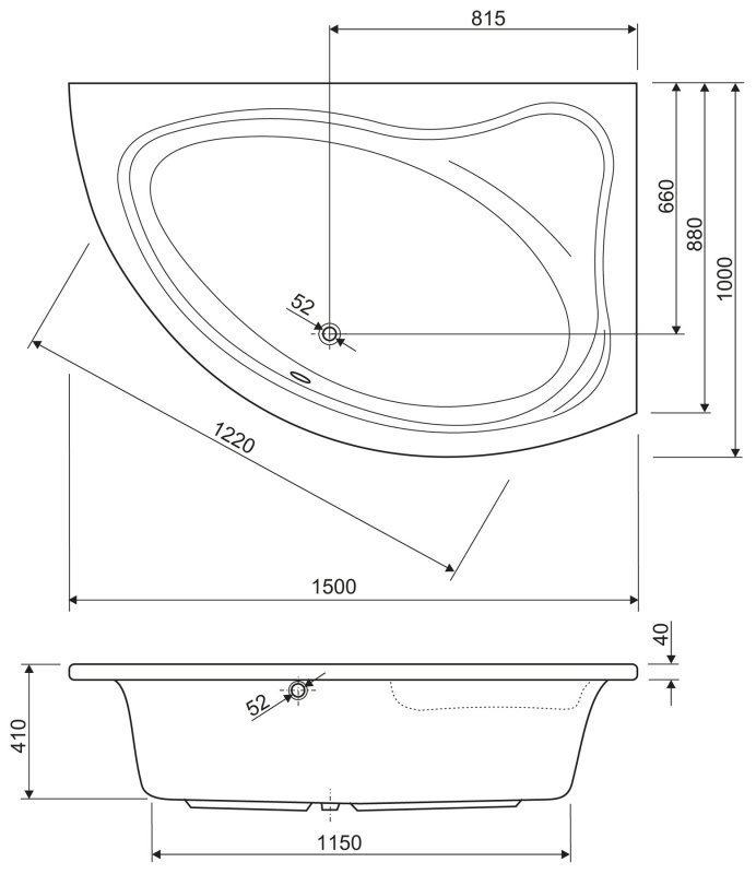 Передняя панель для акриловой ванны TEBE-150-100-41-R