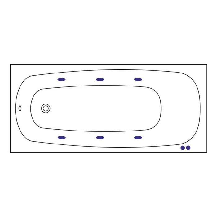 Комплект поставки включает в себя: - Ванна на каркасе, со сливом-переливом; - Гидромассажная система (6 форсунок MIDI-JET); - Пневматическое управление (пневмокнопка вкл/выкл, регулятор подачи воздуха в систему)..