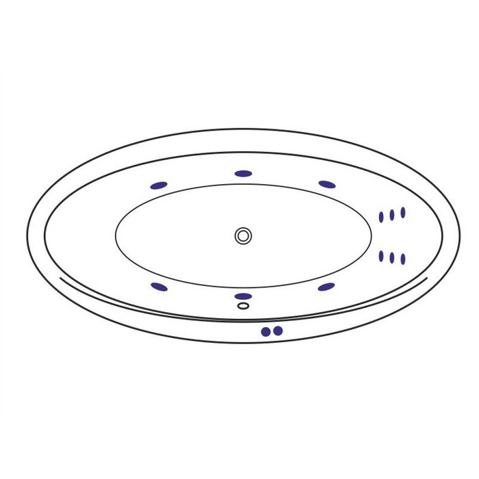 Комплект поставки включает в себя: - Ванна на каркасе, со сливом-переливом; - Гидромассажная система (6 форсунок MIDI-JET); - Массаж спины (6 форсунок MICRO-JET); - Пневматическое управление (пневмокнопка вкл/выкл, регулятор подачи воздуха в систему