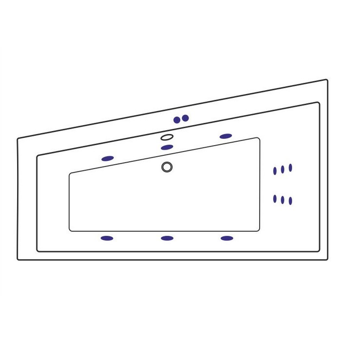 Комплект поставки включает в себя: - Ванна на каркасе, со сливом-переливом; - Гидромассажная система (6 форсунок MIDI-JET); - Массаж спины (6 форсунок MICRO-JET); - Пневматическое управление (пневмокнопка вкл/выкл, регулятор подачи воздуха в систему