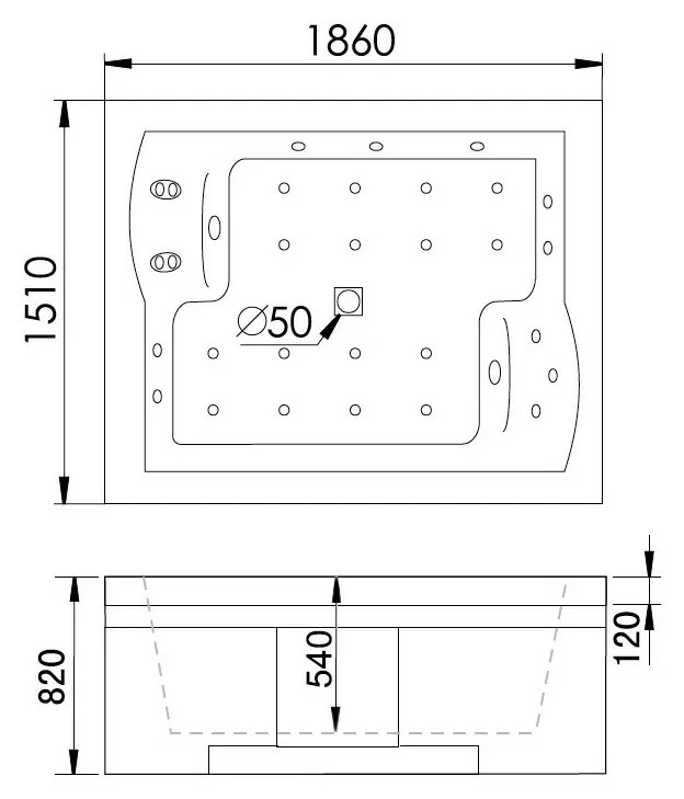 В комплекте каркас, смеситель с изливом, душевая лейка, съемная панель, слив-перелив и подголовник. Есть защита от сухого пуска, регулировка интенсивности массажа, хромотерапия, гидромассаж, аэромассаж и озонирование.