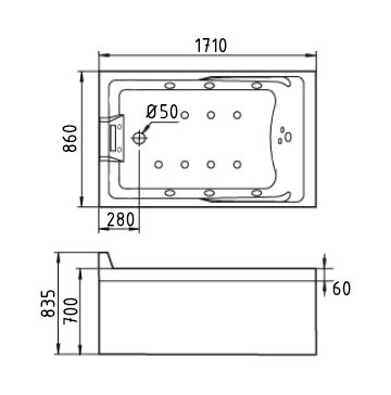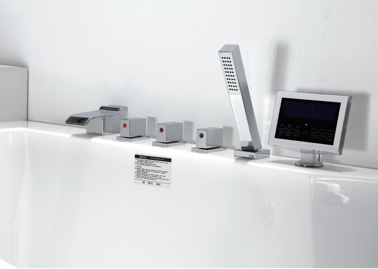Комплектация: ванна, инструкция, каркас, слив-перелив, аэро- и гидромассажная система, ручки, подголовник, смеситель с изливом, душевая лейка, съемная панель, TV 8", пульт ДУ, радио.