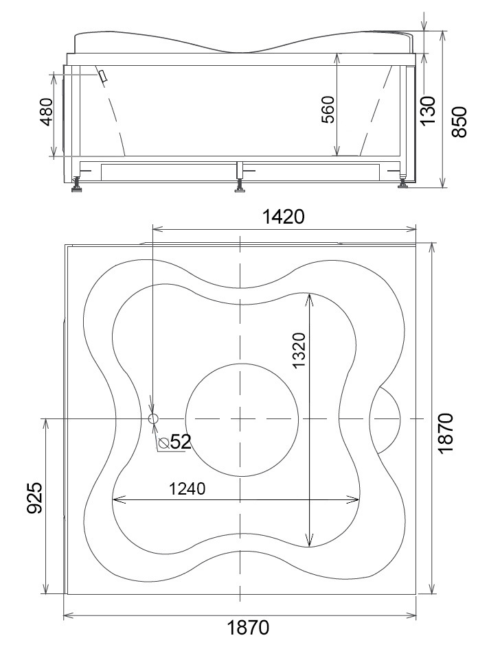 • Размеры: 85х187х187 см.
