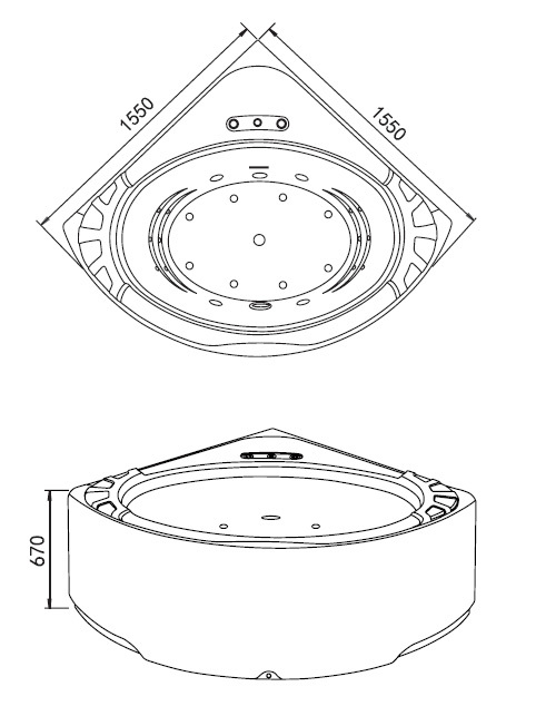 Комплектация: ванна, инструкция, каркас, слив-перелив, аэро- и гидромассажная система, подголовник, круговой каскад (водопад), душевая лейка и вентили с подъемным механизмом.