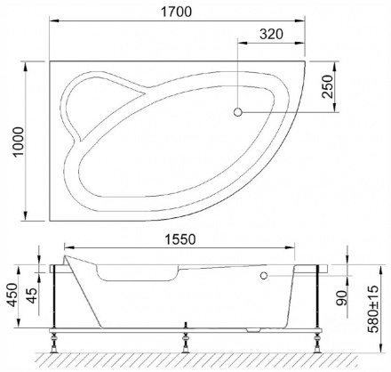 Параметры этой ванны делают ее удобной для людей различного роста и телосложения.