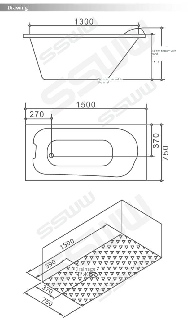 Комплектация: ванна с ручками, без экрана, каркаса и слив-перелива. Пластиковый или медный дренаж заказываются дополнительно.