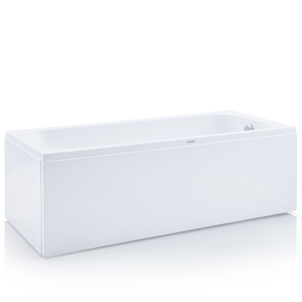 Комплектация: пристенная ванна без гидромассажа, 100% акрил, армированный по всей площади, один фронтальный экран - 100% акрил, усиленное основание с интегрированной рамой, регулируемые ножки, легкосъемное крепление экрана. Дополнительные опции: торцевой экран из акрила и слив-перелив.