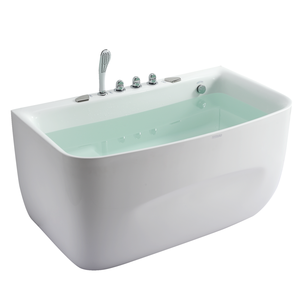 Комплектация: пристенная ванна без гидромассажа, 100% акрил, армированный по всей площади, бесшовный цельный корпус, большое внутренний объем за счет тонких бортов, дно ванны в форме сиденья, усиленная рама из нерж. стали, регулируемые ножки, слив-перелив, все элементы из хромированного металла, смеситель с керамическими картриджами, душевая лейка, каскадный налив воды