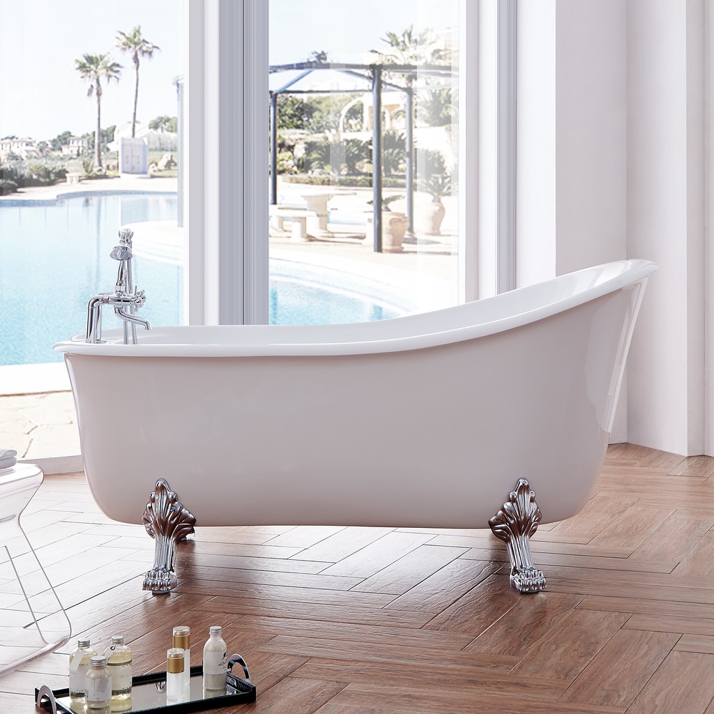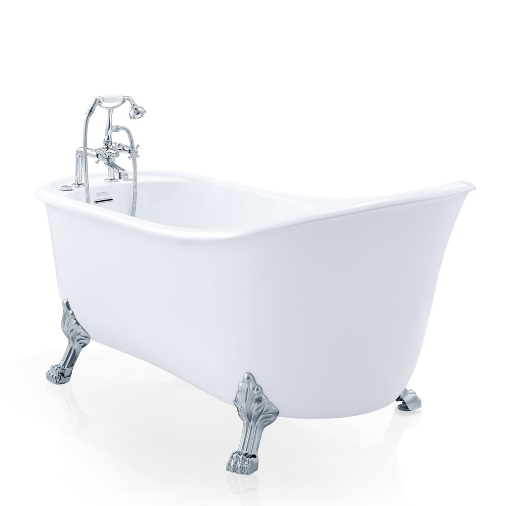 Комплектация: отдельностоящая бесшовная ванна. 100% акрил 5 мм с усиленной армировкой и дополнительной полировкой внутренней чаши. Классический дизайн на металлических хромированных лапах. слив-перелив и дренаж из латунного сплава. Смеситель в ретро стиле из латунного сплава с керамическими картриджами. Душевая лейка в ретро стиле с керамической ручкой. Цвет ножек, смесителя и сливного клапана - ХРОМ (цвет ЗОЛОТО на заказ)