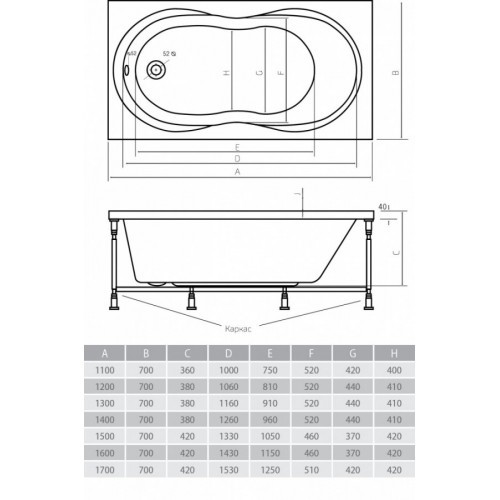 Возможна установка ванны на ножки или на каркас. В случае установки на ножки обязательно крепление ванны к стене.