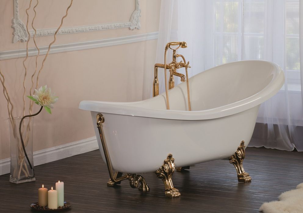 Овальная отдельно стоящая глянцевая ванна AquaStone Скарлет с приподнятой пологой спинкой на изящных бронзовых или белых ножках - воплощение королевского стиля оформления ванной. Литьевой мрамор изготовлен по европейской технологии, обладает высокой прочностью и устойчив к бытовым повреждениям. Он моментально нагревается и долго остывает, сохраняя температуру воды. Ножки бронза Premium.