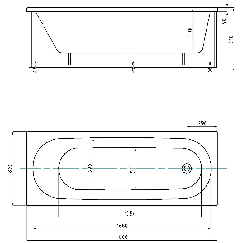 Акриловая ванна Aquatek Оберон 180х80 OBR180-0000008.