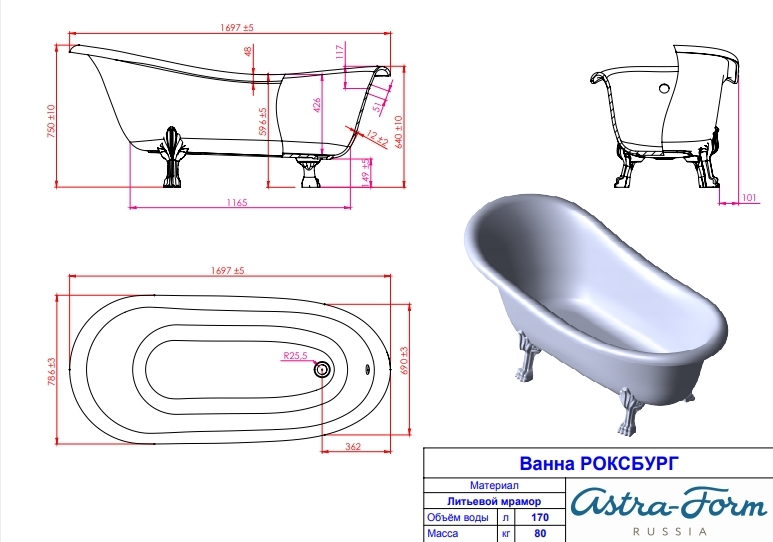 Российская ванна из искусственного камня Астра-Форм Роксбург отдельностоящая 170х79 14 базовых цветов - цена 92628 руб. Оформить заказ и купить ванну Астра-Форм Роксбург отдельностоящая 170х79 14 базовых цветов в Москве в нашем интернет магазине можно по телефону или добавив товар в корзину 🛒.