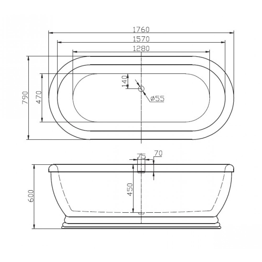 Комплектация: ванна, декоративная накладка на отверстие перелива в цвете хром, инструкция.