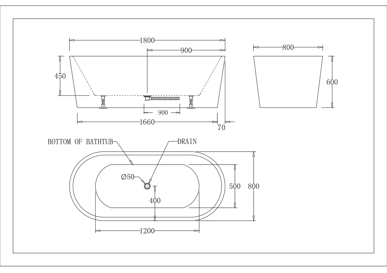 Расположение перелива: Сливное отверстие посередине дна ванны.