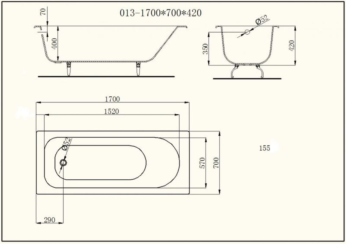 Классическая ванна 170х70 см .
