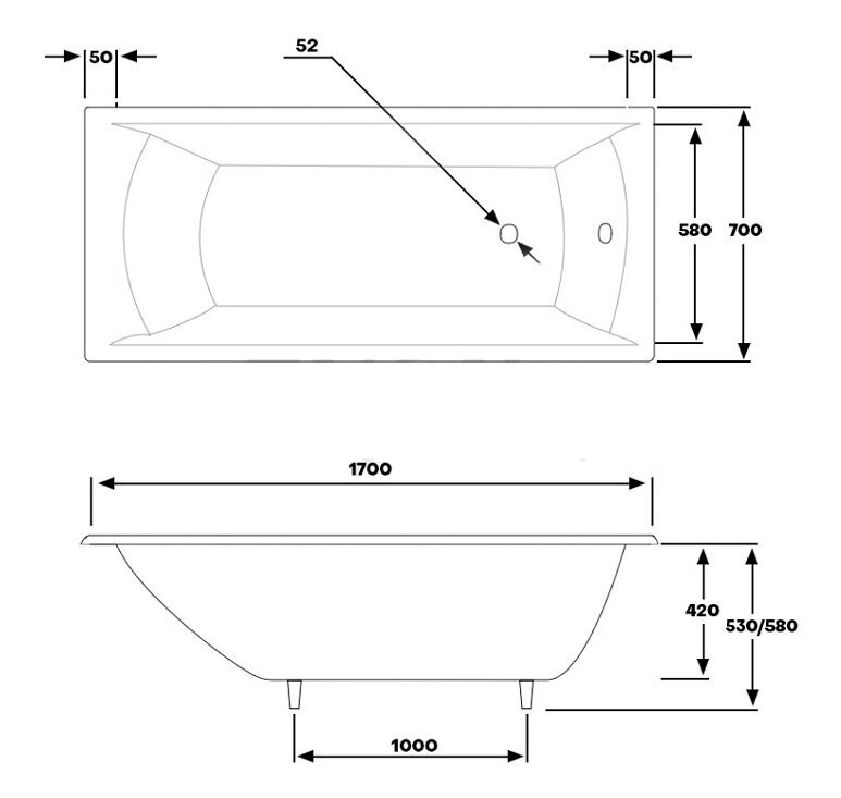 Чугунная ванна Byon Milan 170x70x42 - ванна прямоугольной формы.
