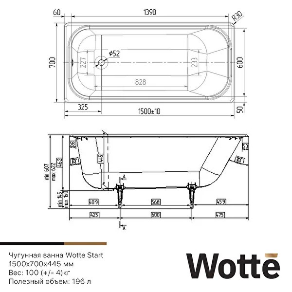 Европейская (Россия-Словения) чугунная ванна Wotte Start 150x70 без антискользящего покрытия - цена 45899 руб. Оформить заказ и купить ванну Wotte Start 150x70 без антискользящего покрытия в Москве в нашем интернет магазине можно по телефону или добавив товар в корзину 🛒.