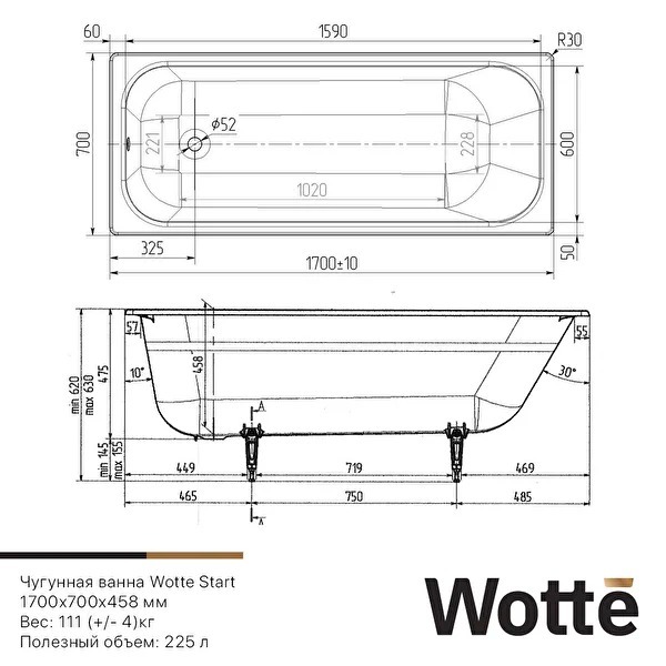 Европейская (Россия-Словения) чугунная ванна Wotte Start 170x70 без антискользящего покрытия - цена 54646 руб. Оформить заказ и купить ванну Wotte Start 170x70 без антискользящего покрытия в Москве в нашем интернет магазине можно по телефону или добавив товар в корзину 🛒.