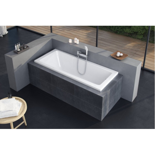 Классическая прямоугольная ванна из литого акрила чистого белого цвета. Дно ванны усилено ДСП-плитой. Четкие, прямые линии придают строгость дизайну.