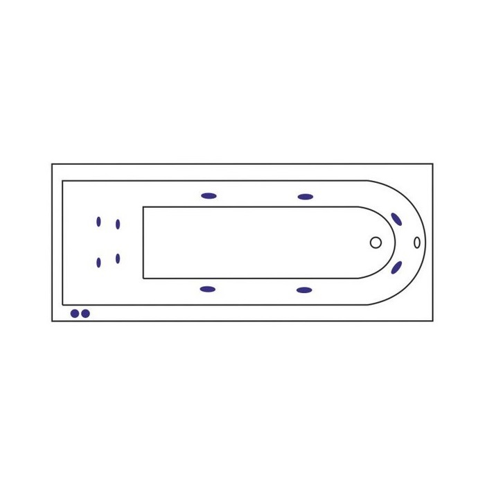 Ванна на каркасе, со сливом-переливом и гиромассажной системой, включающую в себя 4 форсунки основного гидромассажа ; 2 форсунки массажа ступней и 4 форсунки спинных. Пневматическое управление.