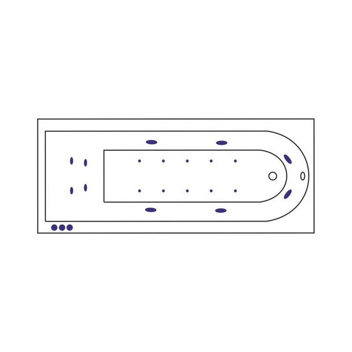 Ванна на каркасе, со сливом-переливом и турбомассажной системой, включающую в себя 4 форсунки основного гидромассажа, 2 форсунки массажа ступней, 4 форсунки на спину и 10 форсунок аэромассажа. Пневматическое управление.
