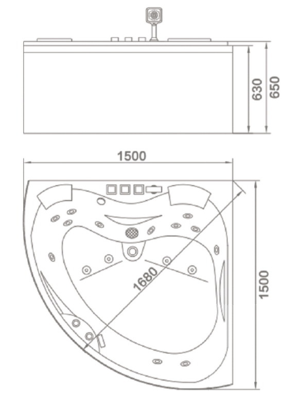 Гидромассаж: 6 спинных форсунок, 4 донных форсунки, 2 форсунки в зоне ног
