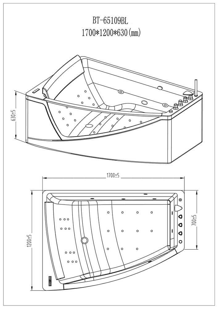Гидромассаж:12 спинных форсунок, 3 боковые форсунки, 2 форсунки в зоне ног