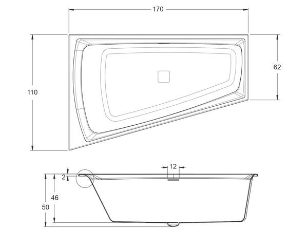 Комплектация: ванна, слив-перелив с наполнением ванны, инструкция.