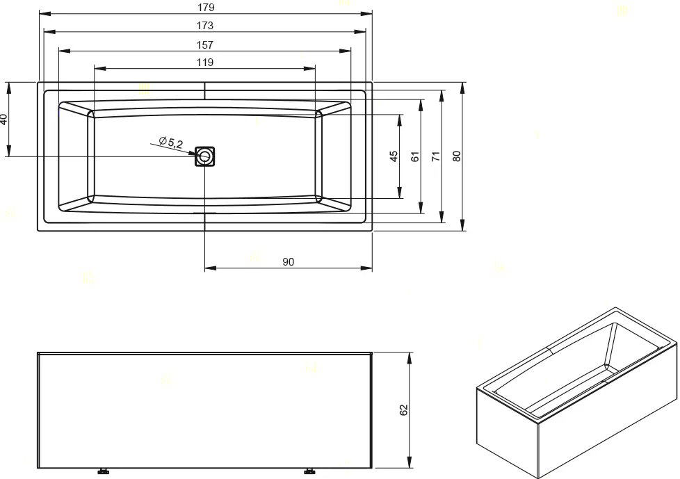 Комплектация: ванна, слив-перелив с наполнением ванны, инструкция.