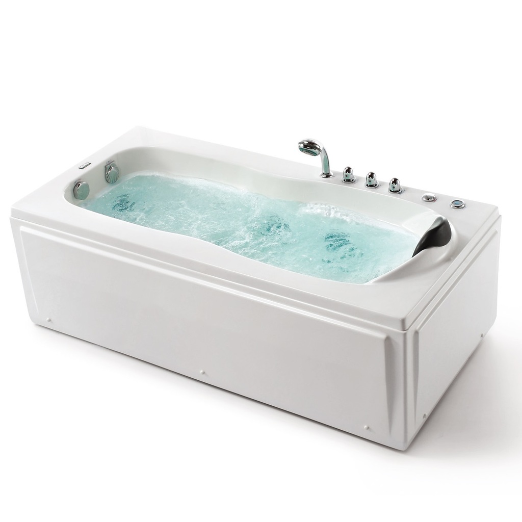 — 100% акрил 5 мм, армированный фиброволокном и дополнительной полировкой внутренней чаши. — Панель управления BH608FN. — Гидромассаж, форсунки: 4 боковые, 2 ноги, 6 спина. — 8 донных форсунок. — Усиленный каркас из нерж. стали. — слив-перелив из латуни, налив воды. — Высококачественный латунный смеситель с керамическими картриджами. — Душевая лейка. — Датчик уровня воды. — Защита от протечек. — Система очистки. — Подводная LED-подсветка. — Дополнительные комплектации: панель HP811AF + аэромассаж + озонация + подогрев воды с термостатом. — Панель H168HBBT + ПДУ + FM-Bluetooth + аэромассаж + озонация + подогрев воды с термостатом. — Донные форсунки аэромассажа с LED-подсветкой.