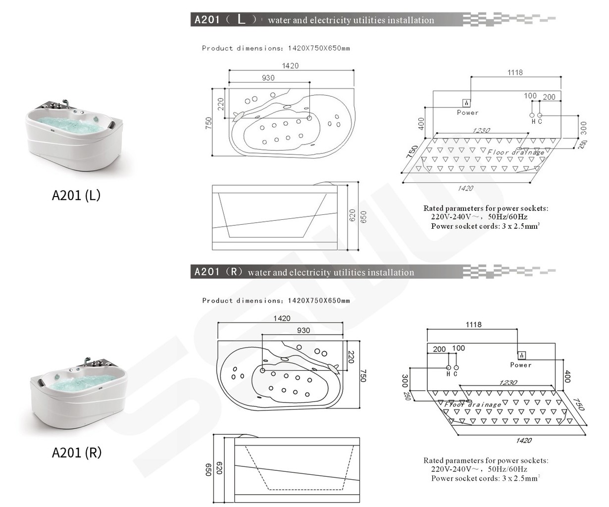 — 100% акрил 5 мм, армированный фиброволокном и дополнительной полировкой внутренней чаши. — Панель управления BH608FN. — Гидромассаж, форсунки: 6 боковые, 3 спина. — 8 донных форсунок. — Усиленный каркас из нерж. стали. — слив-перелив из латуни, налив воды. — Высококачественный латунный смеситель с керамическими картриджами. — Душевая лейка. — Датчик уровня воды. — Защита от протечек. — Система очистки. — Подводная LED-подсветка. — Подголовник из ППУ. — Дополнительные комплектации: панель HP811AF + аэромассаж + озонация + подогрев воды с термостатом. — Панель H168HBBT + ПДУ + FM-Bluetooth + аэромассаж + озонация + подогрев воды с термостатом. — Донные форсунки аэромассажа с LED-подсветкой.