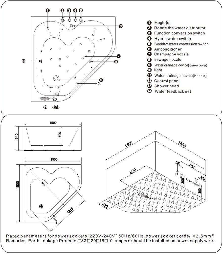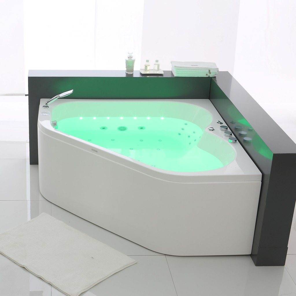 — 100% акрил 5 мм, армированный фиброволокном и дополнительной полировкой внутренней чаши. — Панель управления H631S. — бесшумная система гидромассажа с помпой нового поколения. — Гидромассаж, форсунки: 8 спинных. — Аэромассаж, 13 донных форсунок. — Усиленный каркас из нерж. стали. — слив-перелив и налив воды в одном узле. — Высококачественный латунный смеситель с тремя ручками и керамическими картриджами. — Душевая лейка. — Защита от протечек. — Система очистки. — Подводная LED-подсветка 8 ламп. — Дополнительные комплектации: панель BH608FN - без аэромассажа. — Панель HP811AF + озонация + подогрев воды с термостатом. — 2 подголовника. — Донные форсунки с эффектом "шампанское".