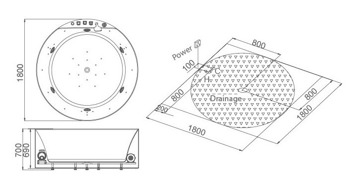 — 100% акрил 5 мм, армированный фиброволокном и дополнительной полировкой внутренней чаши. — Панель управления H168НВBT. — Сенсорный LED-экран, ПДУ, радио, МР3, Bluetooth. — Гидромассаж, форсунки: 5 больших боковых, 9 малых спинных. — Аэромассаж, 14 форсунок. — Подогрев воды с термостатом. — Озонация. — Усиленный каркас из нерж. стали. — слив-перелив из латуни, каскадный налив воды. — Высококачественный латунный смеситель с керамическими картриджами. — Душевая лейка. — Датчик уровня воды. — Защита от протечек. — Система очистки. — Подводная LED-подсветка по кругу. — Дополнительные комплектации: замена белого акрила на цветной.