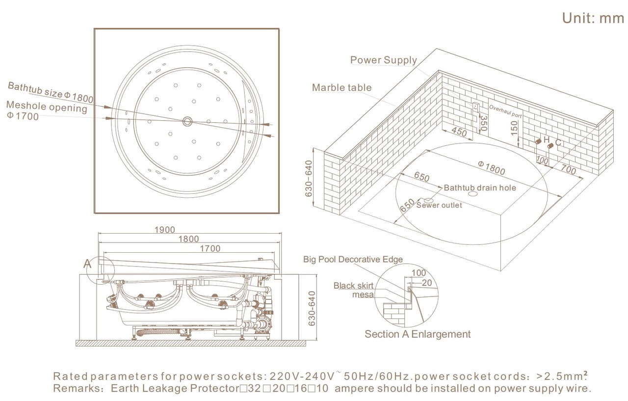 — 100% акрил 5 мм, армированный фиброволокном и дополнительной полировкой внутренней чаши. — Панель управления H168НВBT. — Сенсорный LED-экран, ПДУ, радио, МР3, Bluetooth. — Гидромассаж, форсунки: 15 больших боковых. — ПУЗЫРЬКОВЫЙ АЭРОМАССАЖ (шампанское)- 14 форсунок с LED-подсветкой. — Подогрев воды с термостатом. — Озонация. — слив-перелив из латуни, каскадный налив воды. — Высококачественный латунный смеситель с керамическими картриджами. — Душевая лейка. — Датчик уровня воды. — Защита от протечек. — Система очистки. — LED-подсветка снаружи по кругу.