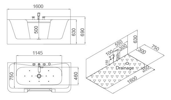 — 100% акрил 5 мм, армированный фиброволокном и дополнительной полировкой внутренней чаши. — Пневмокнопка. — бесшумная система аэромассажа с помпой нового поколения. — Аэромассаж, 10 донных латунных форсунок. — Усиленный каркас из нерж. стали. — слив-перелив и налив воды в одном узле. — Высококачественный латунный смеситель с двумя ручками и с керамическими картриджами. — Душевая лейка. — Защита от протечек. — Система очистки. — Интегрированный во фронтальную панель поручень из нерж. стали. — 2 подголовника из ППУ.
