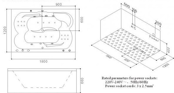 — 100% акрил 5 мм, армированный фиброволокном и дополнительной полировкой внутренней чаши. — Панель управления BH608FN. — Гидромассаж, форсунки: 4 больших боковых + 12 спинных. — 8 донных форсунок. — Усиленный каркас из нерж. стали. — слив-перелив из латуни, каскадный налив воды. — Высококачественный латунный смеситель с керамическими картриджами. — Душевая лейка. — Датчик уровня воды. — Защита от протечек. — Система очистки. — Подводная LED-подсветка. — Подголовники ППУ. — Дополнительные комплектации: панель HP811AF + аэромассаж + озонация + подогрев воды с термостатом. — Панель H168HBBT + ПДУ + FM-Bluetooth + аэромассаж + озонация + подогрев воды с термостатом. — Донные форсунки аэромассажа с LED-подсветкой. — Ароматерапия.