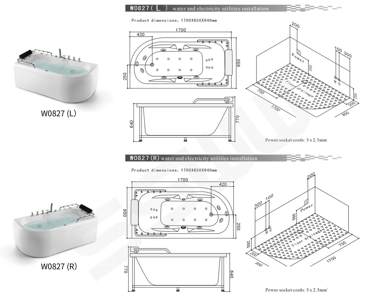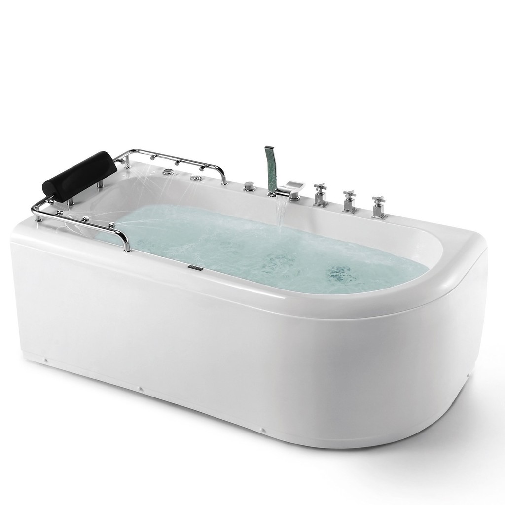 — 100% акрил 5 мм, армированный фиброволокном и дополнительной полировкой внутренней чаши. — Панель управления BH608FN. — Гидромассаж, форсунки: 6 больших боковых + 6 спинных. — 8 донных форсунок. — 8 форсунок в поручне из нерж. стали с форсунками для массажа шеи. — Усиленный каркас из нерж. стали. — слив-перелив из латуни, каскадный налив воды. — Высококачественный латунный смеситель с керамическими картриджами. — Душевая лейка. — Датчик уровня воды. — Защита от протечек. — Система очистки. — Подводная LED-подсветка. — Подголовник ППУ. — Дополнительные комплектации: панель HP811AF + аэромассаж + озонация + подогрев воды с термостатом. — Панель H168HBBT + ПДУ + FM-Bluetooth + аэромассаж + озонация + подогрев воды с термостатом. — Донные форсунки аэромассажа с LED-подсветкой. — Ароматерапия.