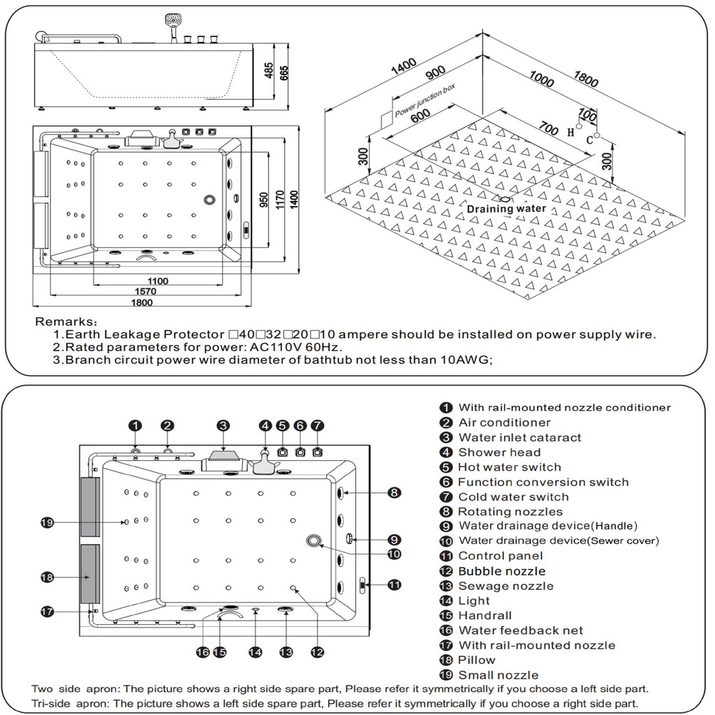 — Бесшовная фронтальная панель. — 100% акрил 5 мм, армированный фиброволокном и дополнительной полировкой внутренней чаши. — Панель управления H168НВBT. — Сенсорный LED-экран, ПДУ, радио, МР3, Bluetooth. — Гидромассаж, форсунки: 8 больших боковых + 12 спинных. — Аэромассаж, 16 форсунок. — 6 шейных форсунок в поручнях. — Подогрев воды с термостатом. — Озонация. — Усиленный каркас из нерж. стали. — слив-перелив из латуни, каскадный налив воды. — Высококачественный латунный смеситель с керамическими картриджами. — Душевая лейка. — Датчик уровня воды. — Защита от протечек. — Система очистки. — LED-подсветка снаружи снизу. — Подводная LED-подсветка. — Ручка из нерж. стали. — Подголовники из ППУ. — Дополнительные комплектации: экран с трех сторон. — Замена белого акрила на цветной.