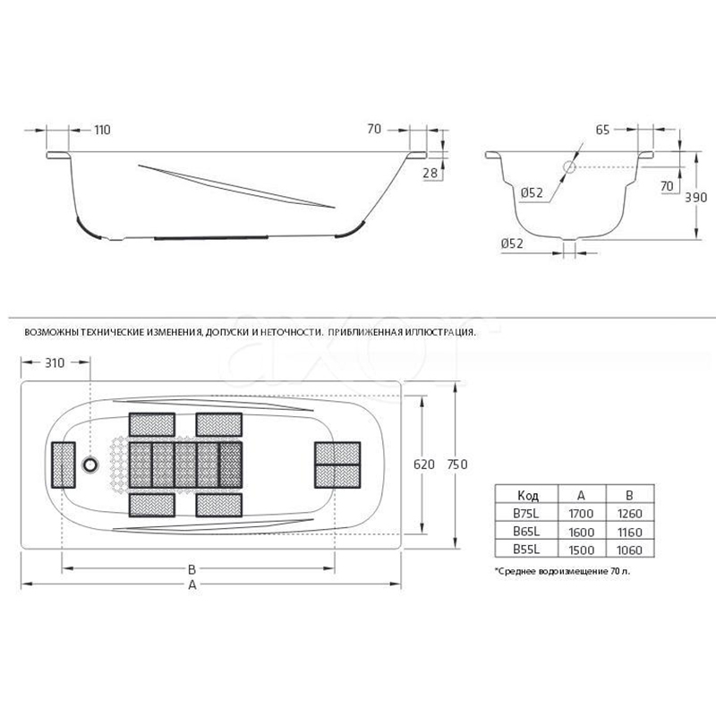 Португальская стальная ванна BLB Anatomica 170x75 с отверстиями для ручек - цена 12513 руб. Оформить заказ и купить ванну BLB Anatomica 170x75 с отверстиями для ручек в Москве в нашем интернет магазине можно по телефону или добавив товар в корзину 🛒.