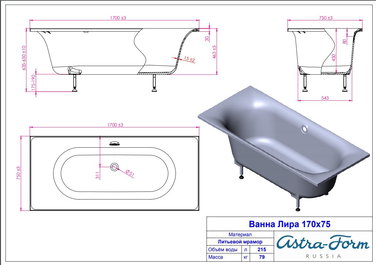 Российская ванна из искусственного камня Астра-Форм Лира отдельностоящая 170x75 14 базовых цветов - цена 63426 руб. Оформить заказ и купить ванну Астра-Форм Лира отдельностоящая 170x75 14 базовых цветов в Москве в нашем интернет магазине можно по телефону или добавив товар в корзину 🛒.