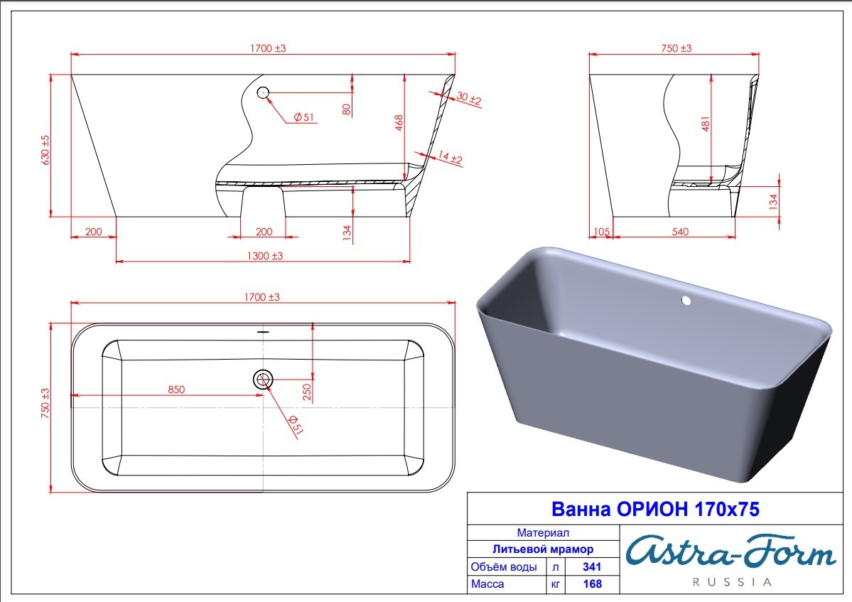 Российская ванна из искусственного камня Астра-Форм Орион отдельностоящая 170x75 - цена 112344 руб. Оформить заказ и купить ванну Астра-Форм Орион отдельностоящая 170x75 в Москве в нашем интернет магазине можно по телефону или добавив товар в корзину 🛒.