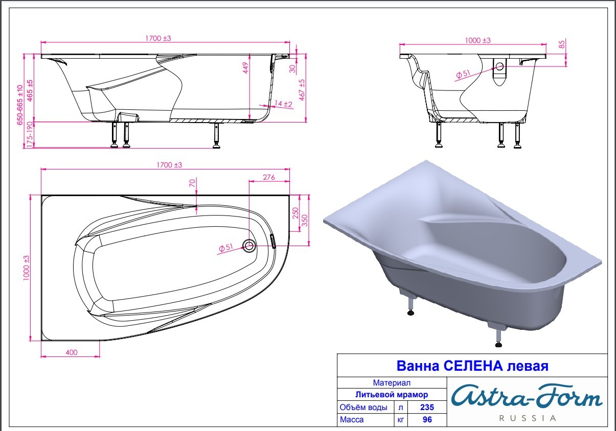 Российская ванна из искусственного камня Астра-Форм Селена 170x100 L - цена 61938 руб. Оформить заказ и купить ванну Астра-Форм Селена 170x100 L в Москве в нашем интернет магазине можно по телефону или добавив товар в корзину 🛒.