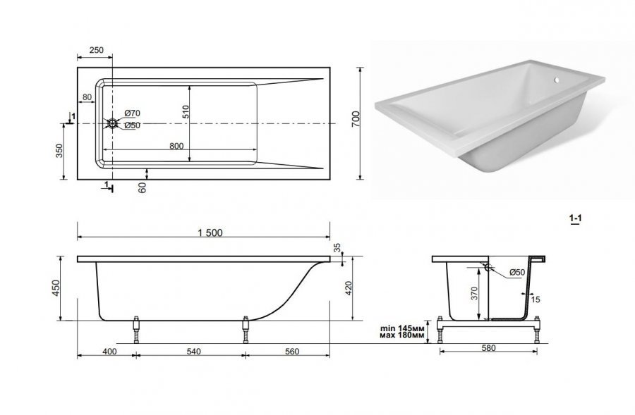 Эта ванна произведена в России и имеет размеры 150х70 см, что обеспечивает максимальный комфорт во время купания.