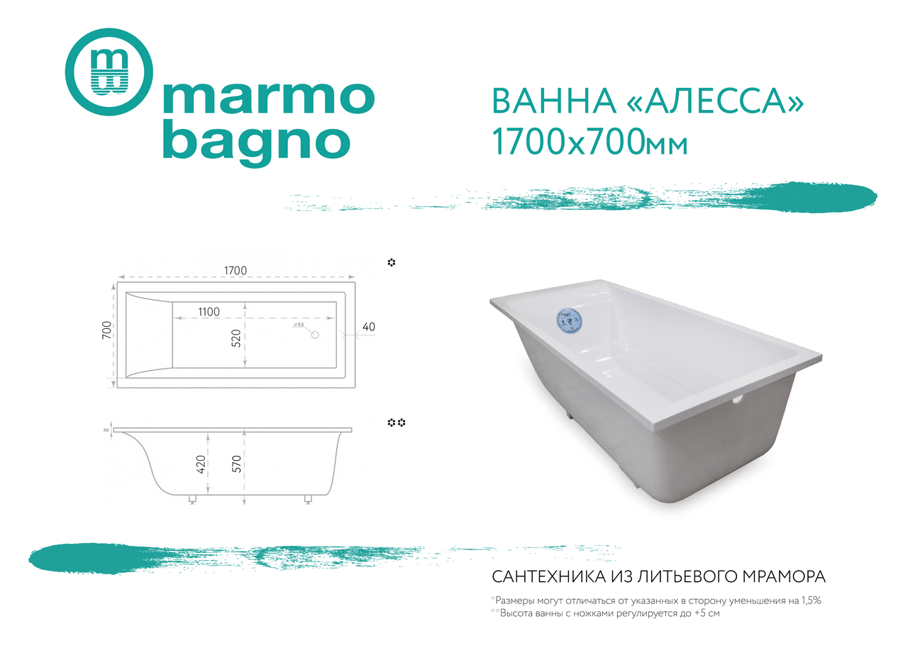 Российская ванна из искусственного камня Marmo Bagno Алесса 170х70 с ножками - цена 47942 руб. Оформить заказ и купить ванну Marmo Bagno Алесса 170х70 с ножками в Москве в нашем интернет магазине можно по телефону или добавив товар в корзину 🛒.