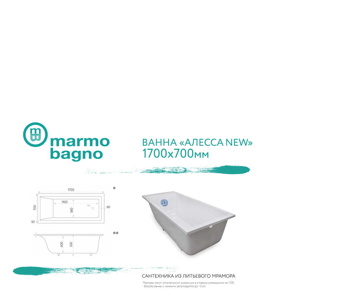 Российская ванна из искусственного камня Marmo Bagno Алесса New 170х70 с ножками - цена 47942 руб. Оформить заказ и купить ванну Marmo Bagno Алесса New 170х70 с ножками в Москве в нашем интернет магазине можно по телефону или добавив товар в корзину 🛒.