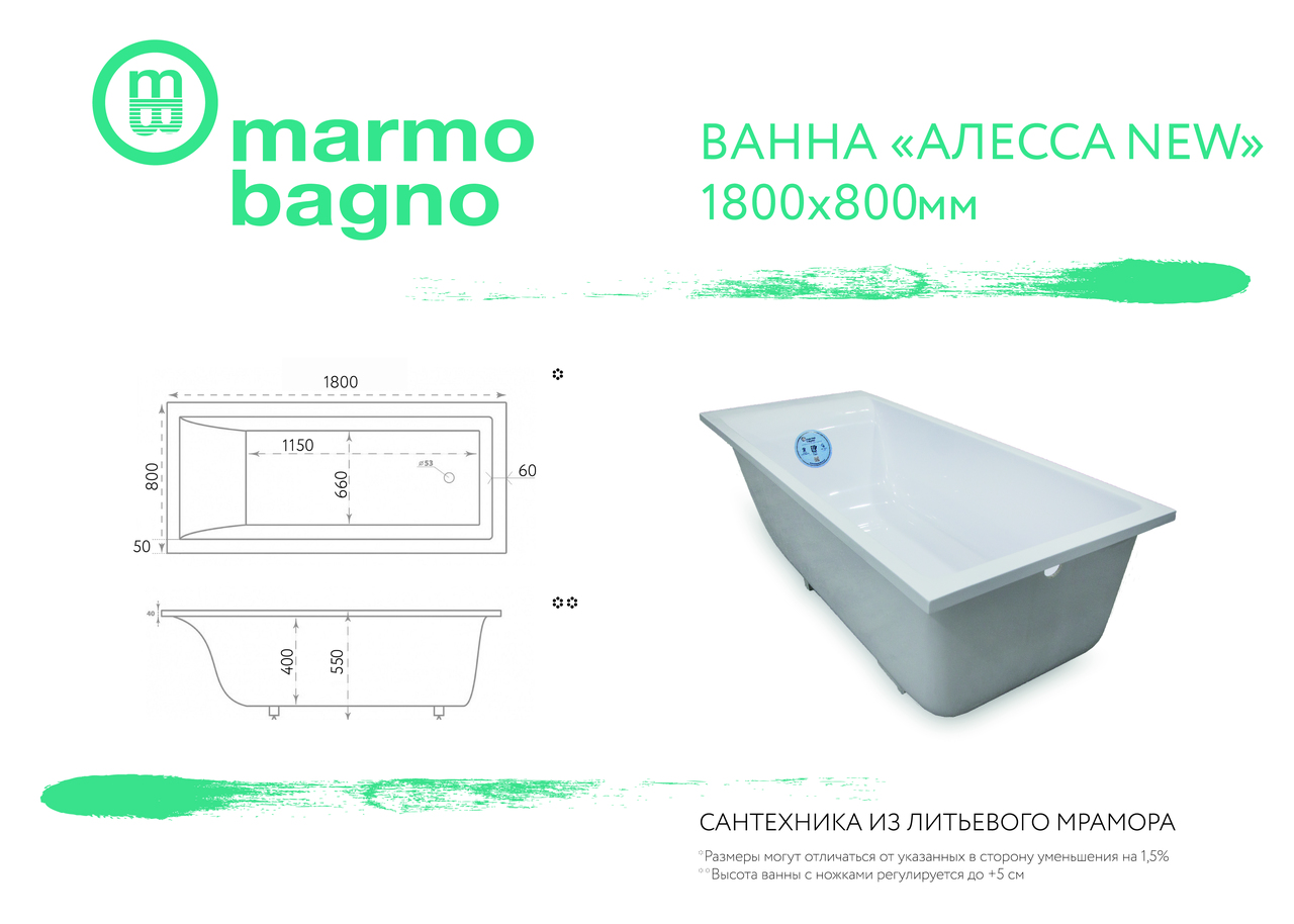 Российская ванна из искусственного камня Marmo Bagno Алесса New 180х80 - цена 53568 руб. Оформить заказ и купить ванну Marmo Bagno Алесса New 180х80 в Москве в нашем интернет магазине можно по телефону или добавив товар в корзину 🛒.