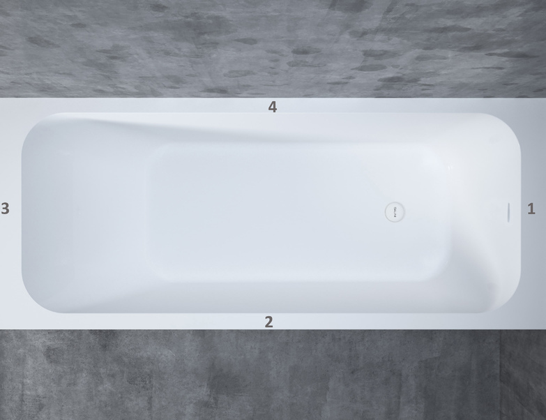 Комплектация: встраиваемая ванна с прямоугольной чашей, регулируемые ножки до 2 см, донный клапан "Up&Down" белый, сифон, интегрированный слив-перелив.