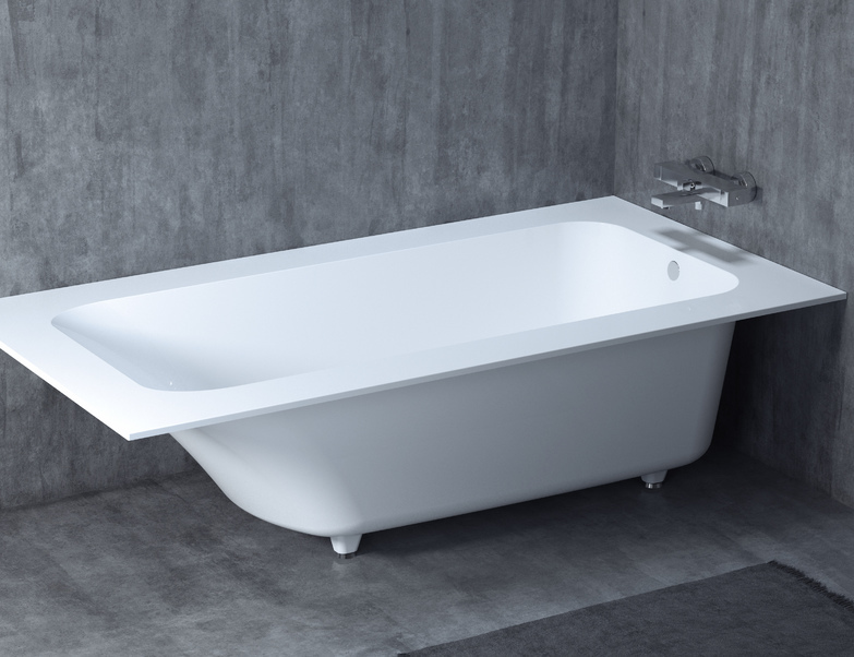 Комплектация: встраиваемая ванна с прямоугольной чашей, регулируемые ножки до 2 см, ширина бортика от 2 до 15 см, возможно обрезать бортики под заказ.